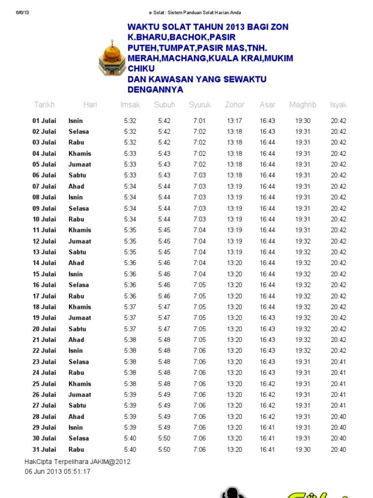 Jadual Waktu Solat Negeri Jabatan Mufti Negeri Kelantan Facebook