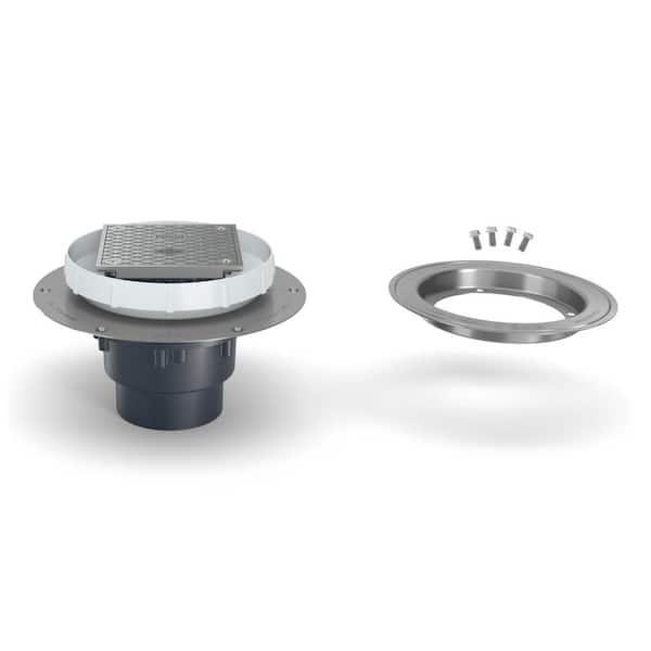 Zurn 5 In Pvc Cleanout With 5 In Stainless Steel Cover Stainless Steel Deck Plate And 3 In X 4 In Outlet Ezc2 Pv3 St Ss The Home Depot